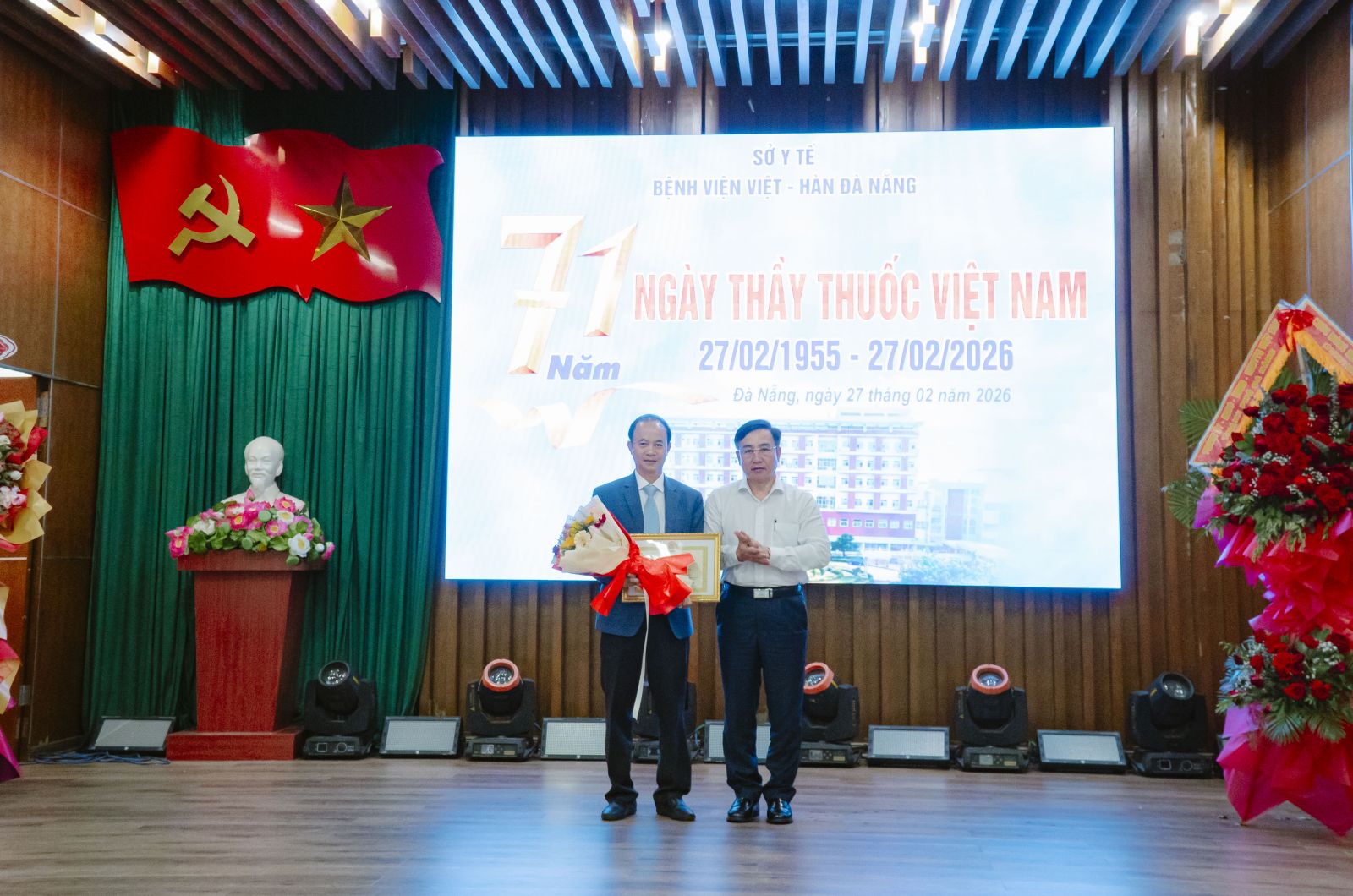 Chiều ngày 27/02/2026, Bệnh viện Đa khoa Trung ương Quảng Nam (nay là Bệnh viện Việt – Hàn Đà Nẵng) đã tổ chức Lễ kỷ niệm 71 năm Ngày Thầy thuốc Việt Nam (27/02/1955 – 27/02/2026) kết hợp vinh danh các bác sĩ tốt nghiệp Bác sĩ Chuyên khoa II năm 2025 và phát động phong trào thi đua năm 2026.