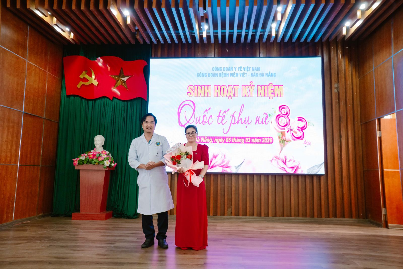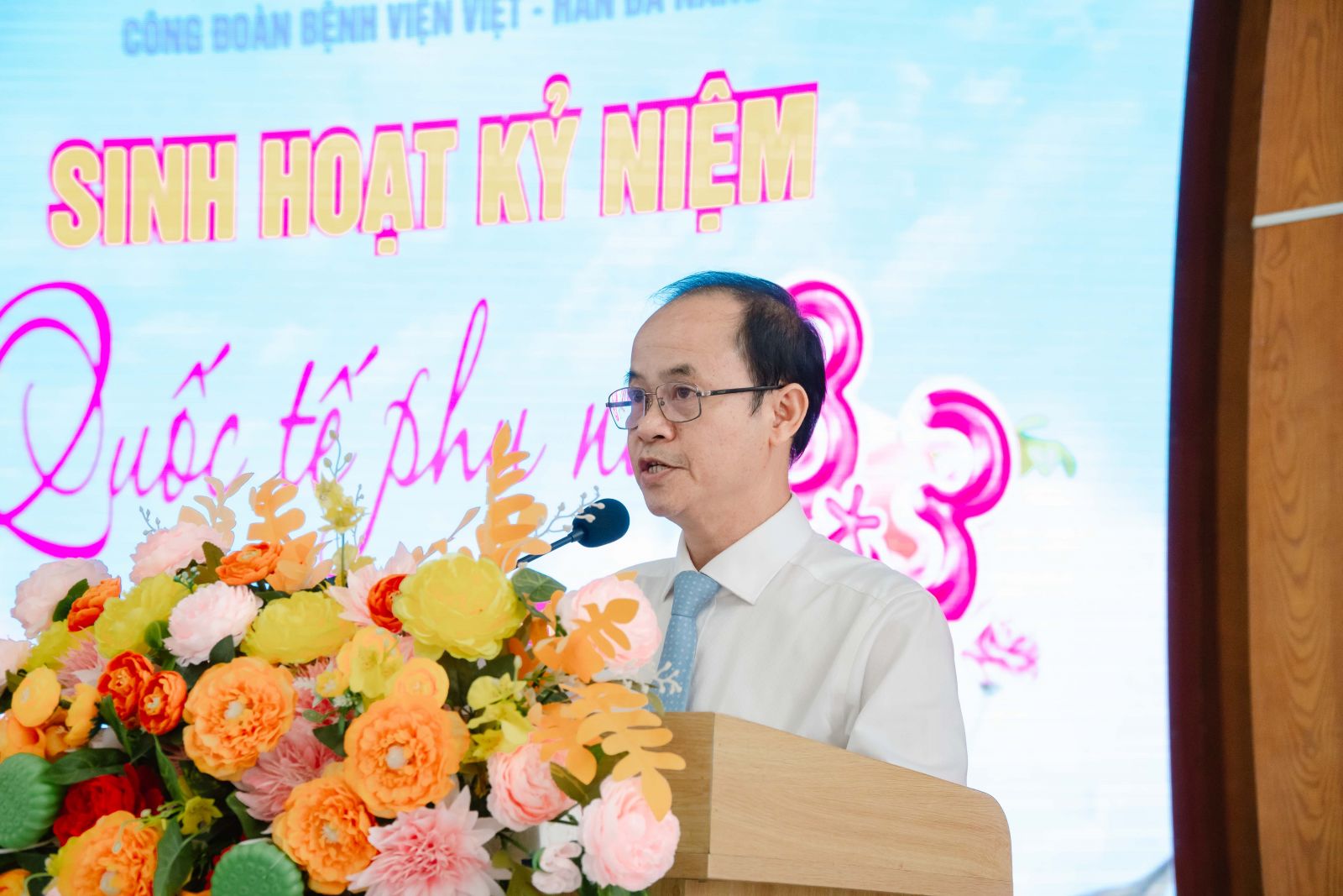 Đại diện Ban Giám đốc Bệnh viện, TS.BS. Phan Tấn Quang – Phó Giám đốc Bệnh viện đã tặng hoa chúc mừng Ban Nữ công Công đoàn Bệnh viện, gửi những lời chúc tốt đẹp và sự tri ân sâu sắc đến toàn thể nữ cán bộ, viên chức, người lao động đang công tác tại Bệnh viện Việt – Hàn Đà Nẵng.