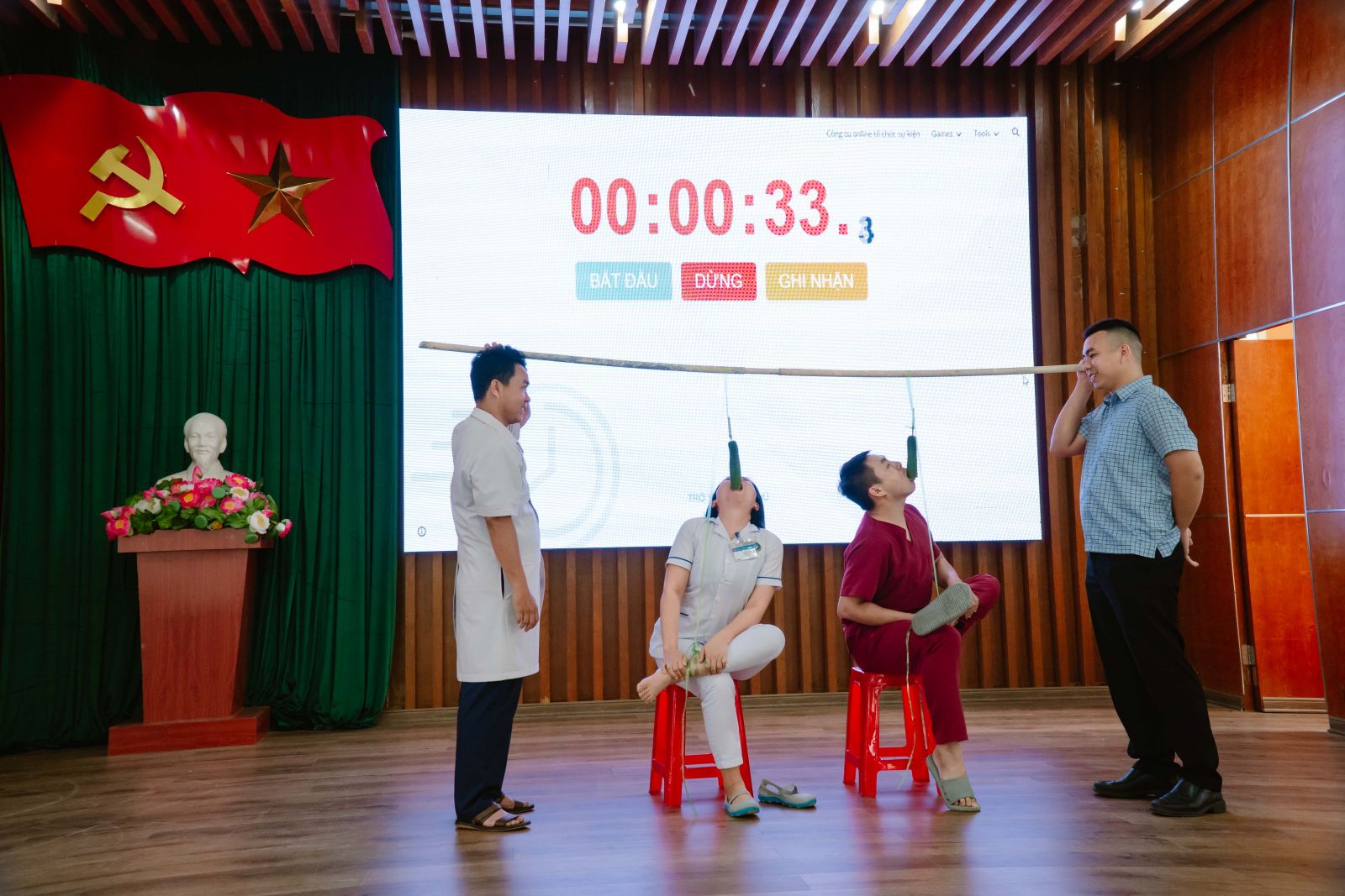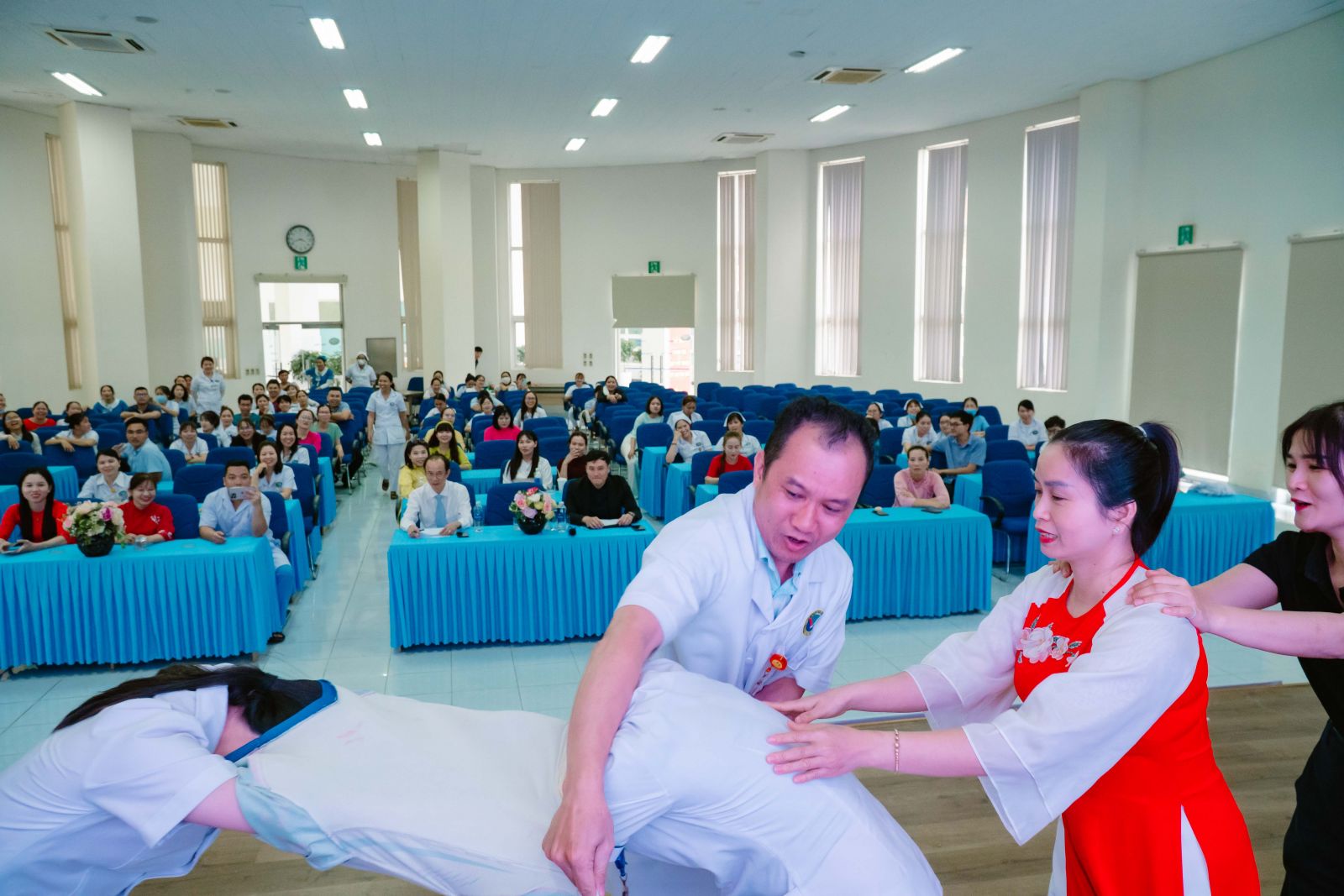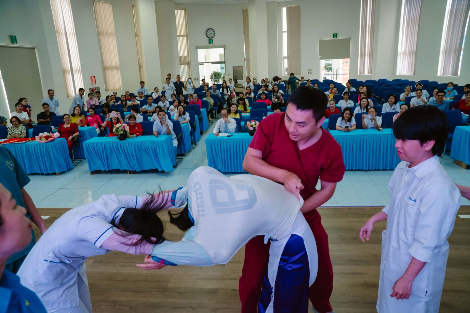 Các phần thi diễn ra trong không khí sôi nổi, hào hứng, mang lại nhiều tiếng cười và tạo nên tinh thần đoàn kết, gắn bó giữa các khoa, phòng trong toàn Bệnh viện.