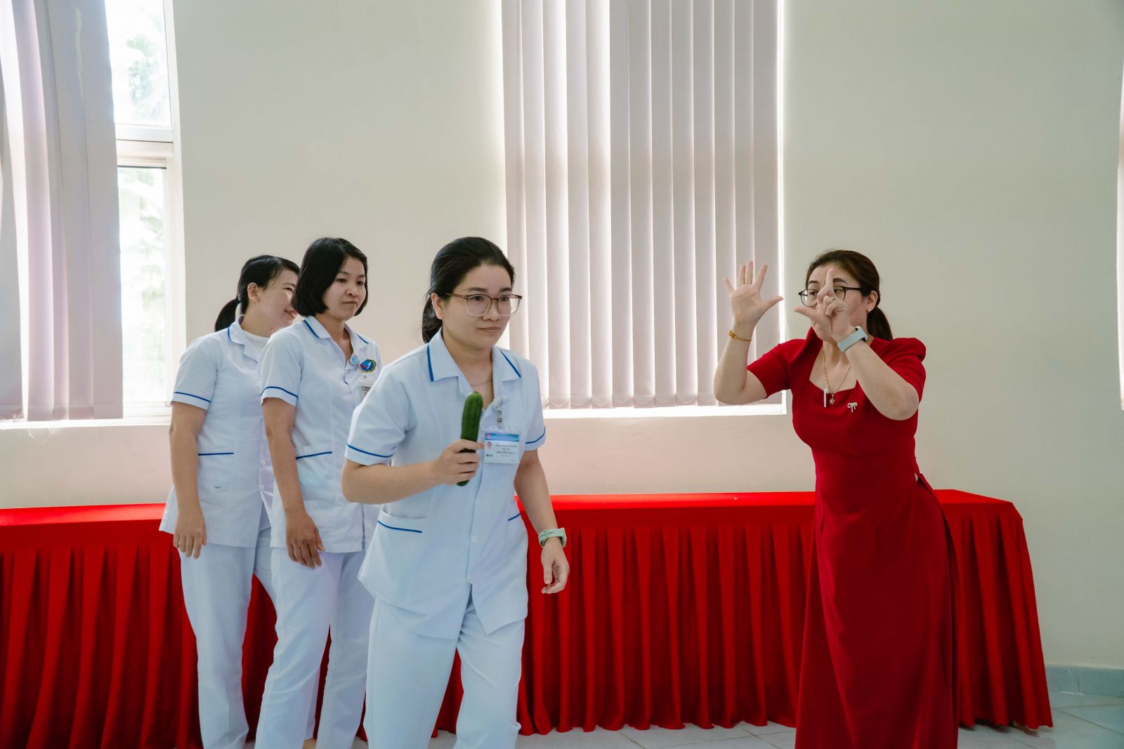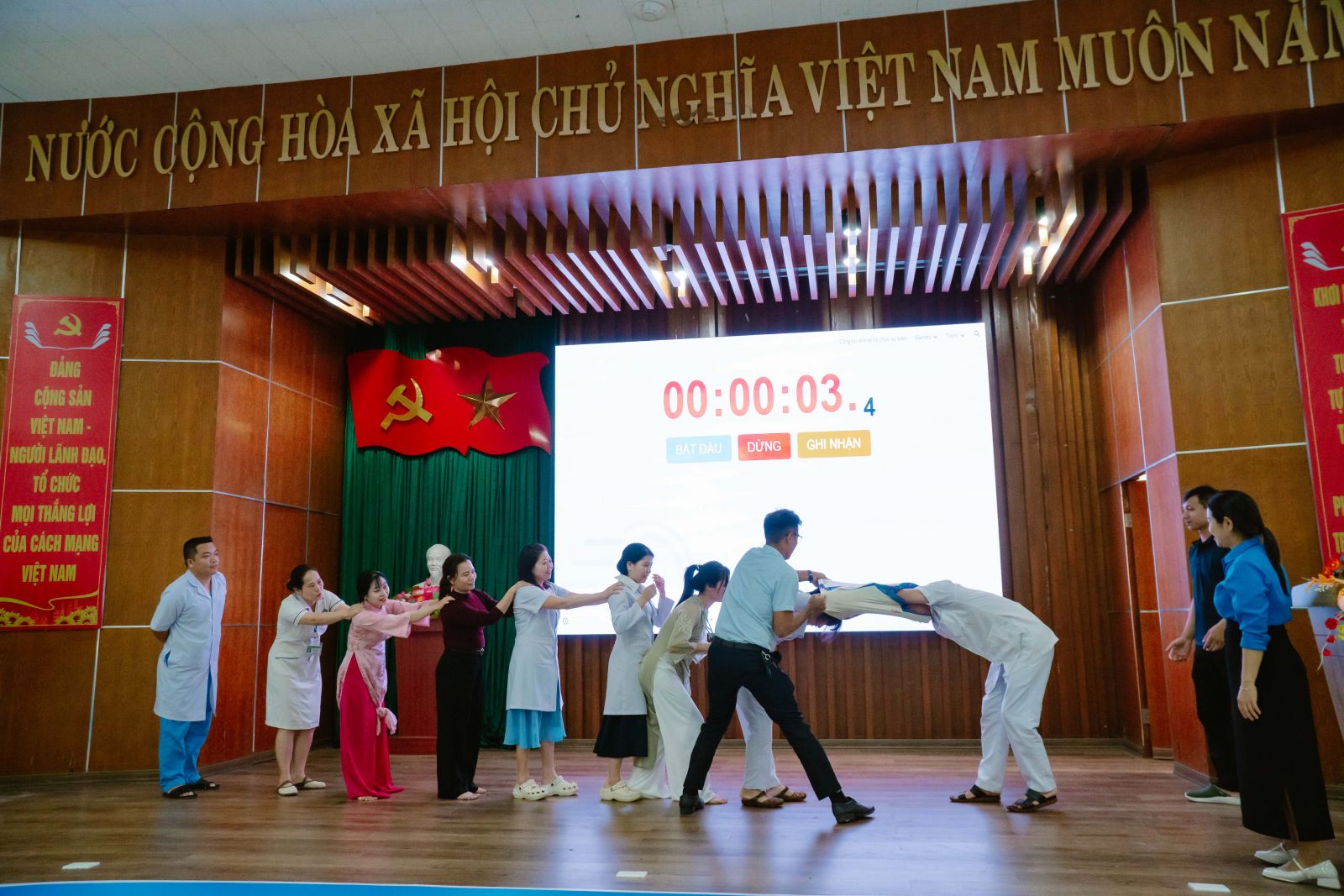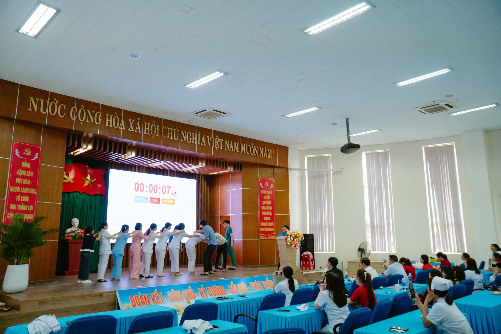 Các phần thi diễn ra trong không khí sôi nổi, hào hứng, mang lại nhiều tiếng cười và tạo nên tinh thần đoàn kết, gắn bó giữa các khoa, phòng trong toàn Bệnh viện.