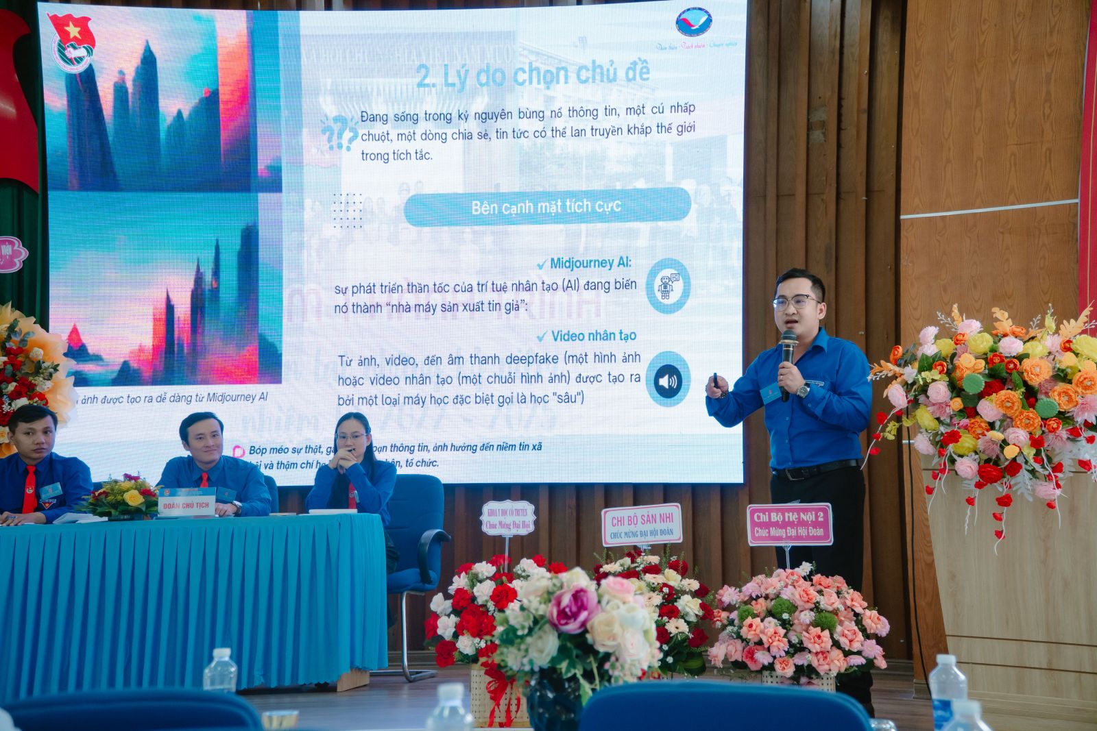 Tiếp đó, đồng chí Bùi Trần Khoa Huân – Chi đoàn Tổng hợp trình bày chuyên đề “Đoàn viên, thanh niên, hãy lên tiếng với: Thận trọng sản xuất tin giả”, nhấn mạnh trách nhiệm của thế hệ trẻ ngành y trong việc đấu tranh chống tin giả, góp phần bảo vệ niềm tin xã hội và uy tín nghề y.