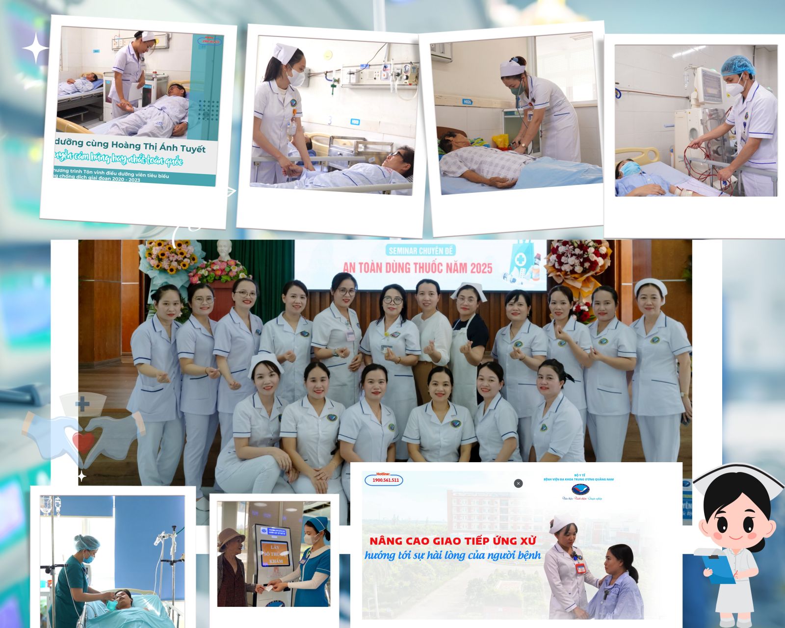 Tại Bệnh viện Đa khoa Trung ương Quảng Nam, những điều dưỡng luôn tỏa sáng bằng sự tận tâm và tinh thần trách nhiệm. Mỗi nụ cười, mỗi cử chỉ, mỗi lời động viên của họ đều mang đến sự an tâm cho người bệnh – minh chứng sống động cho phương châm hoạt động của Bệnh viện: “Thân thiện – Trách nhiệm – Chuyên nghiệp”.