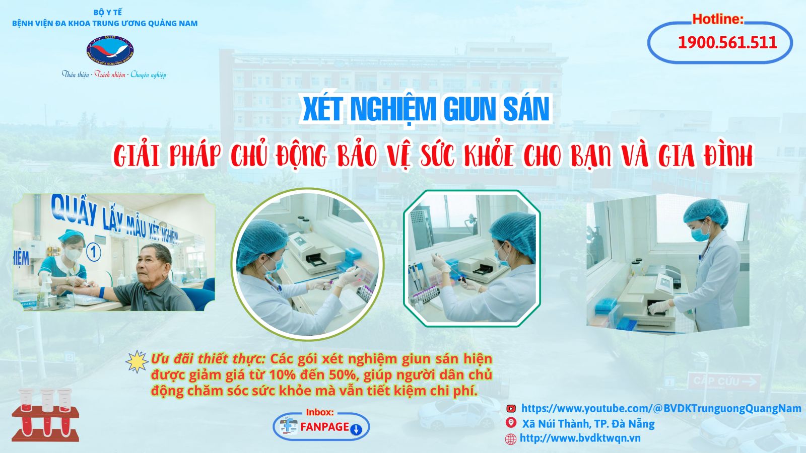 DKTWQNO - Hiện nay, Khoa Vi sinh – Bệnh viện Đa khoa Trung ương Quảng Nam triển khai các gói xét nghiệm giun sán với mức giảm giá từ 10% – 50%, giúp người dân dễ dàng tiếp cận dịch vụ y tế chất lượng với chi phí hợp lý. Đây là nỗ lực của Bệnh viện nhằm mang đến sự thuận tiện, tiết kiệm và an tâm cho người dân khu vực phía Nam TP. Đà Nẵng trong việc tầm soát, phát hiện và điều trị sớm các bệnh lý do ký sinh trùng gây ra.