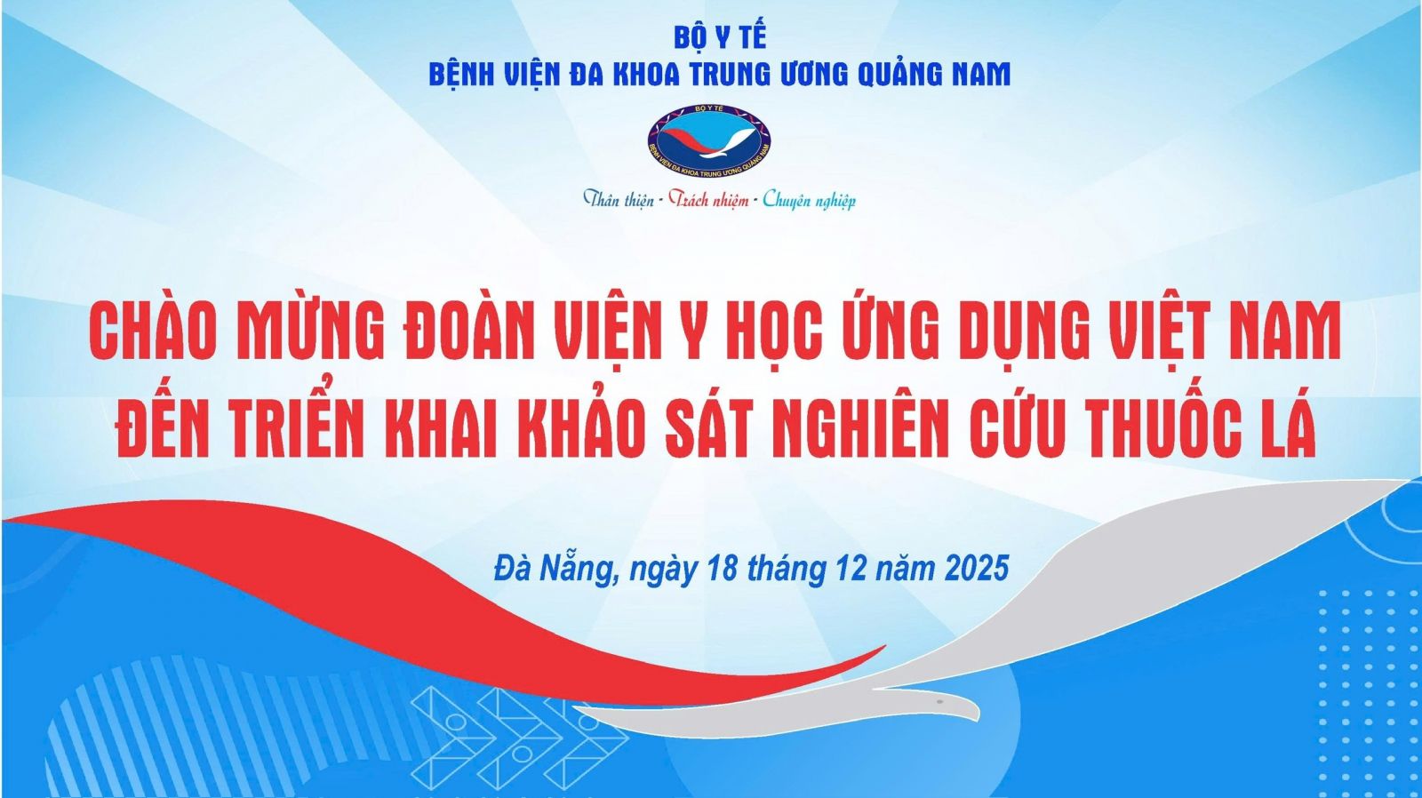 Đoàn công tác do ThS.BS. Lê Minh Khánh, Trung tâm Nghiên cứu – Viện Y học ứng dụng Việt Nam làm trưởng đoàn, cùng ThS.BS. Trương Mạnh Tú và các khảo sát viên thuộc Viện và Quỹ Phòng, chống tác hại của thuốc lá. Hoạt động khảo sát diễn ra từ ngày 18 đến 20/12/2025 tại nhiều khoa, trung tâm của bệnh viện.