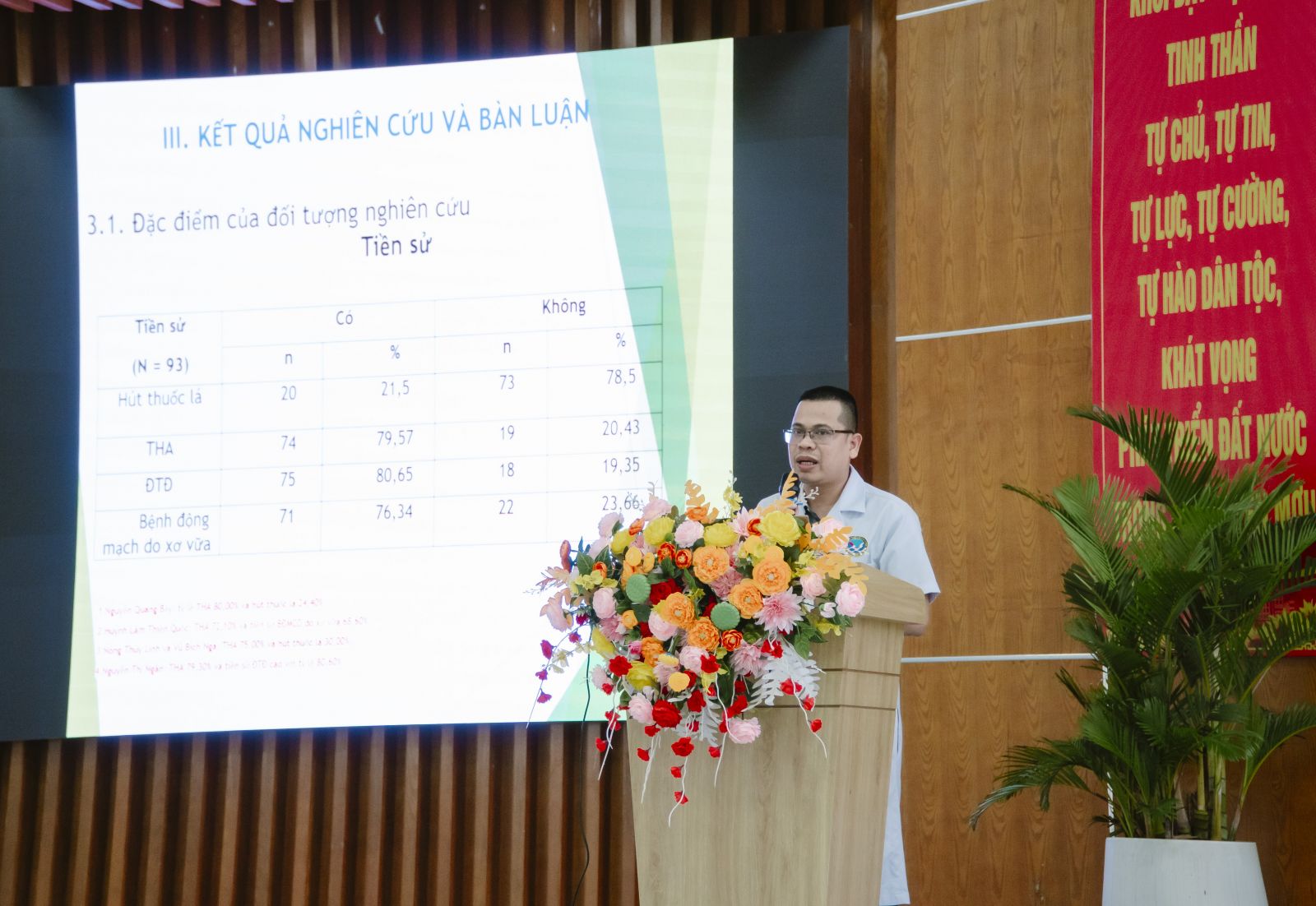 Báo cáo chuyên đề thứ nhất do do BSCKII. Đoàn Quốc Đạt – Trưởng khoa Lão trình bày với chủ đề: “Khảo sát chỉ số ABI với siêu âm Doppler mạch máu chi dưới ở bệnh nhân đái tháo đường typ II cao tuổi tại Bệnh viện Đa khoa Trung ương Quảng Nam”.