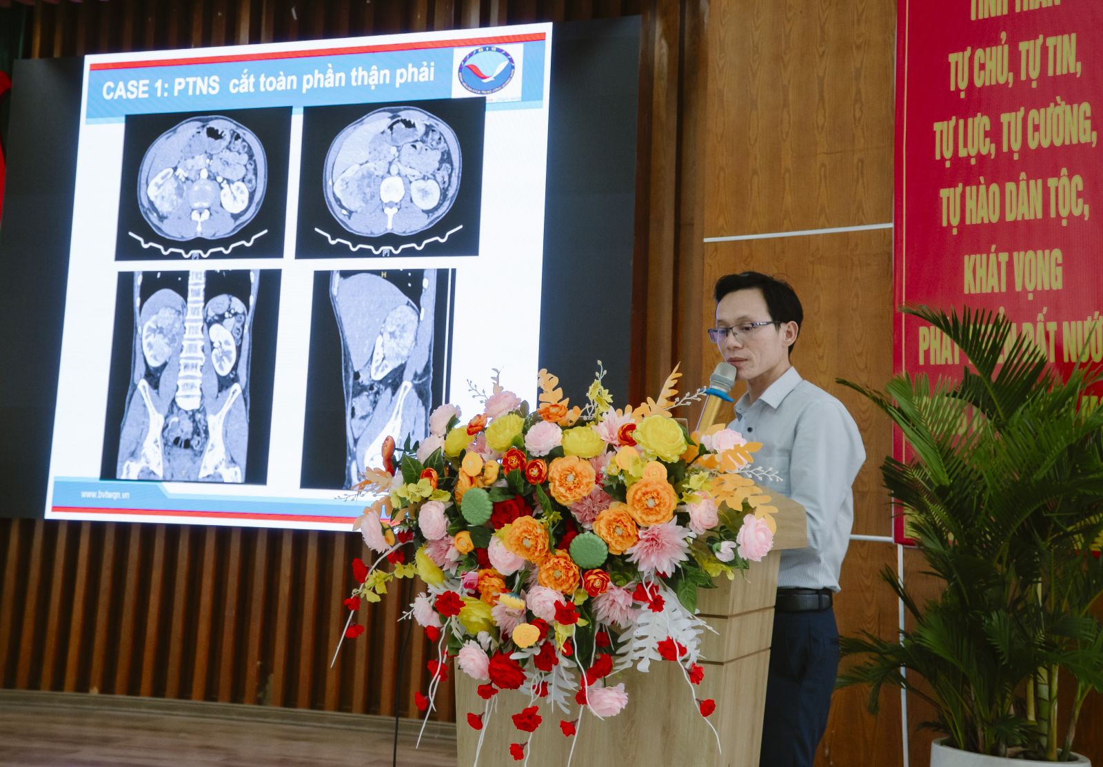 Tiếp nối chương trình, BSCKII. Trần Văn Do – Trưởng khoa Ngoại tổng hợp trình bày báo cáo chuyên đề: “Phẫu thuật nội soi điều trị ung thư thận – Nhân 2 trường hợp”.