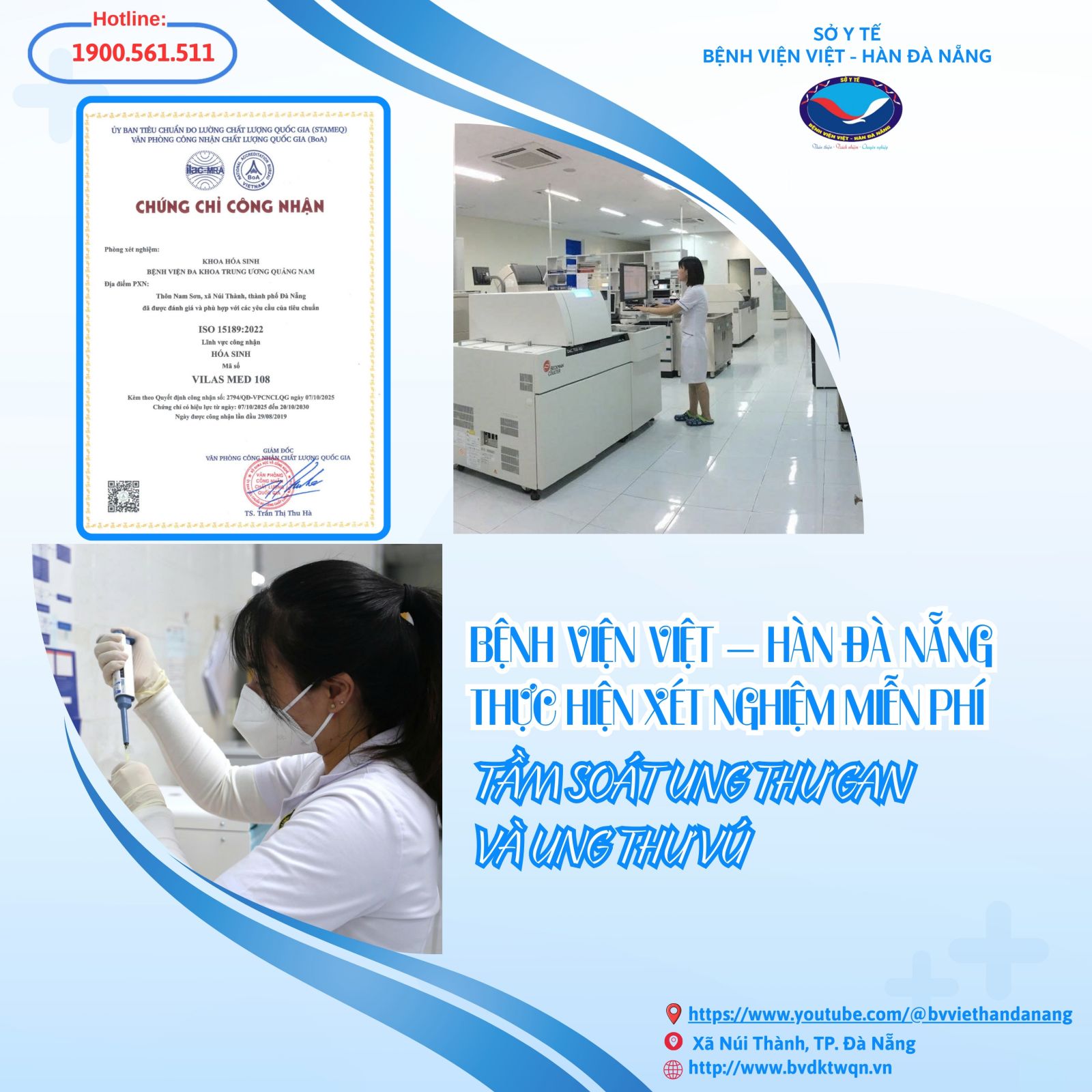Chương trình được triển khai từ ngày 16/3/2026 và áp dụng cho đến khi đủ số lượng 300 xét nghiệm miễn phí cho mỗi loại marker, do Khoa Hóa sinh – Bệnh viện Việt – Hàn Đà Nẵng thực hiện.