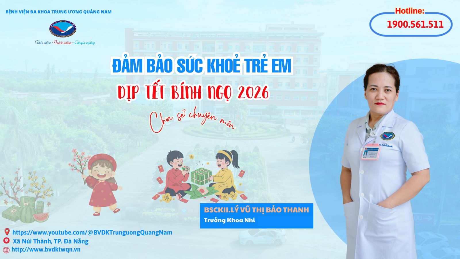 Những ngày Tết là dịp trẻ nhỏ được vui chơi, sum vầy cùng gia đình, tuy nhiên đây cũng là thời điểm tiềm ẩn nhiều nguy cơ ảnh hưởng đến sức khỏe trẻ em, đặc biệt là các bệnh lý hô hấp, tiêu hóa và tai nạn thương tích. Dưới đây là những khuyến cáo quan trọng trong chăm sóc và bảo vệ sức khỏe trẻ dịp Tết, được BSCKII. Lý Vũ Thị Bảo Thanh – Trưởng Khoa Nhi, Bệnh viện Đa khoa Trung ương Quảng Nam chia sẻ, giúp phụ huynh chủ động phòng bệnh, để trẻ đón Tết an toàn và khỏe mạnh.