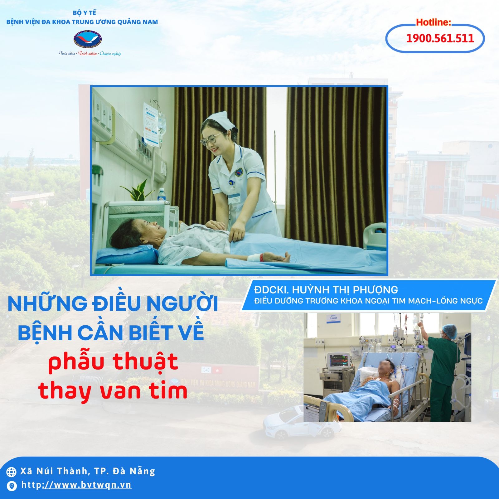 Để được khám, tư vấn và phẫu thuật các bệnh lý van tim, hãy đến Khoa Ngoại Tim mạch – Lồng ngực, Bệnh viện Đa khoa Trung ương Quảng Nam (Phòng khám số 210).