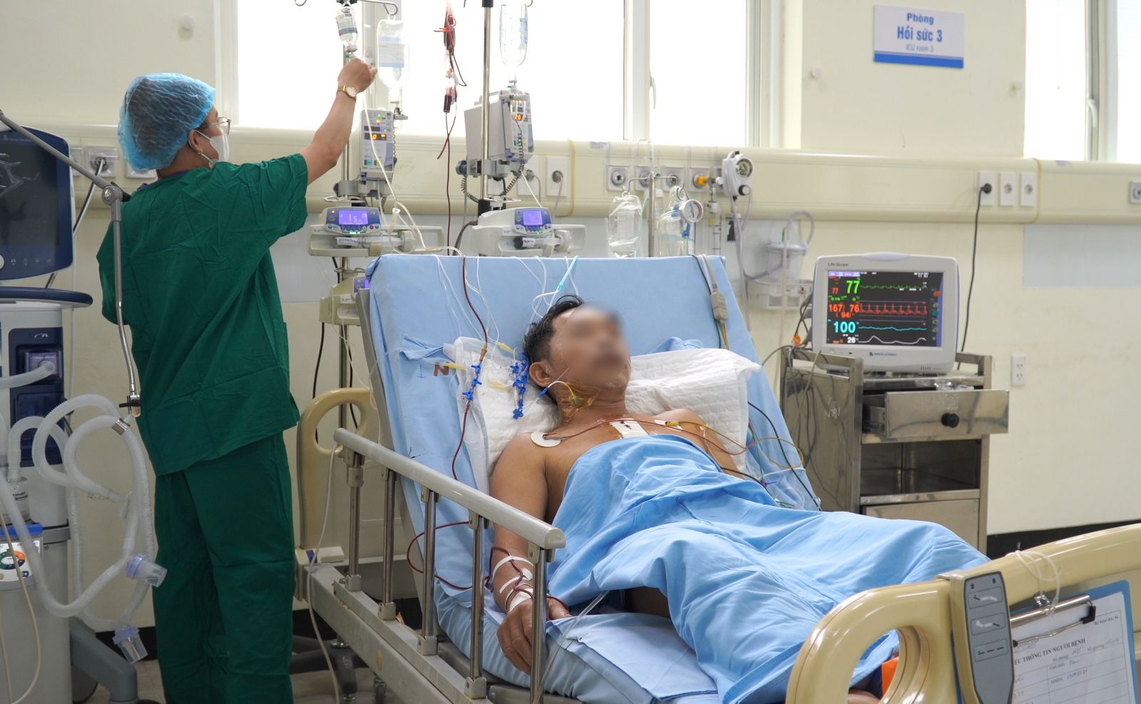 Người bệnh sau phẫu thuật tim được chăm sóc tại phòng hồi sức tim.