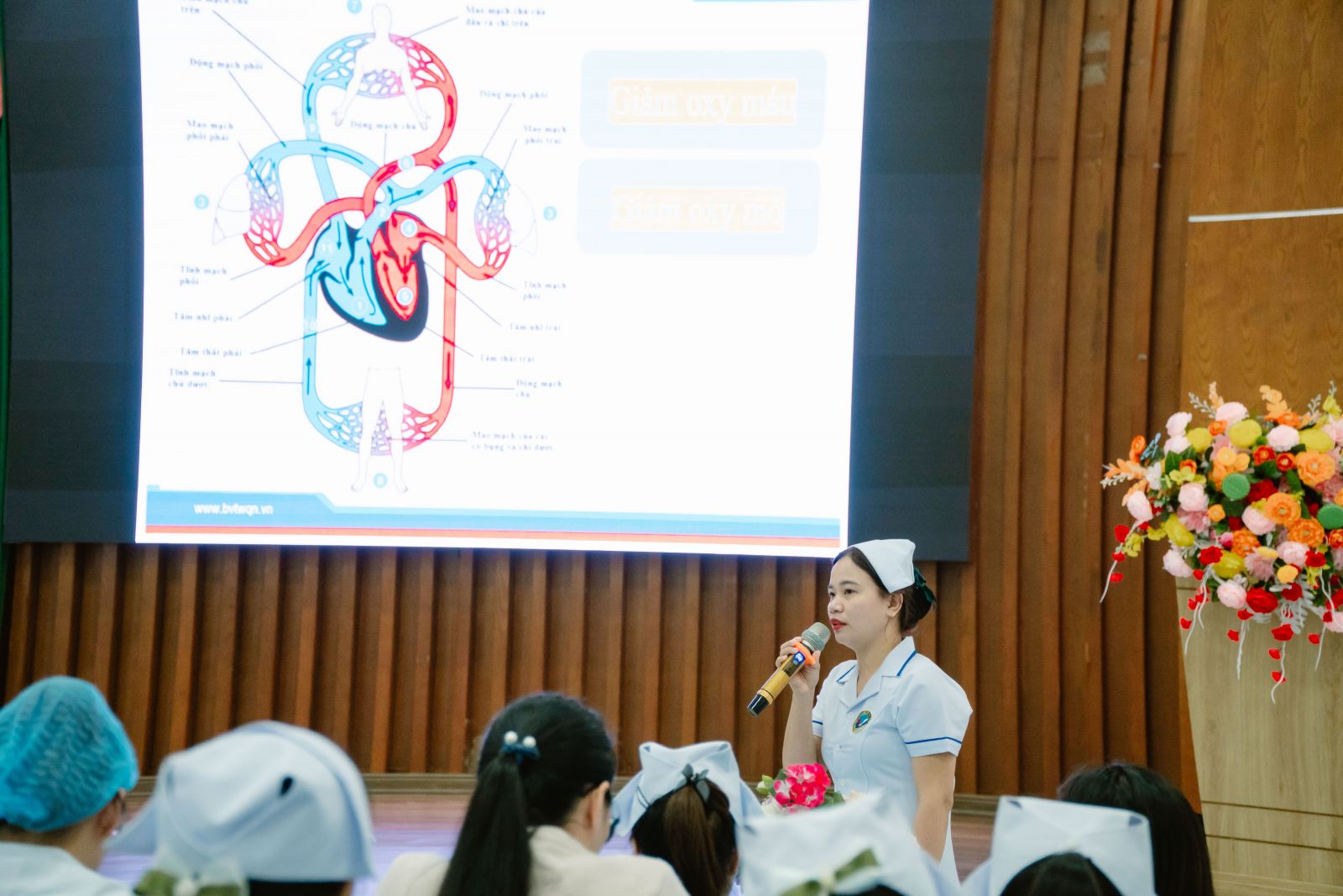 Nội dung chuyên đề cũng làm rõ các nguyên tắc điều chỉnh giảm oxy mô trong chăm sóc và điều trị, bao gồm đảm bảo thông khí – trao đổi khí, vận chuyển oxy trong máu và duy trì tuần hoàn hiệu quả. Đặc biệt, báo cáo viên lưu ý nguy cơ của tăng oxy máu quá mức, nhấn mạnh việc sử dụng oxy cần đúng chỉ định, đúng liều để đảm bảo an toàn cho người bệnh.