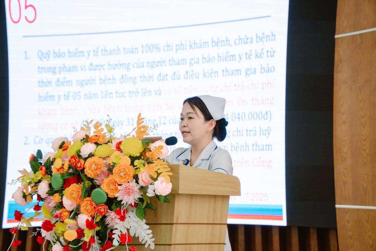 ĐD.CKI. Nguyễn Thị Kiều – Điều dưỡng trưởng Khoa Khám bệnh đã chia sẻ và cập nhật những điểm mới trong công tác khám chữa bệnh theo quy định của Bảo hiểm y tế.