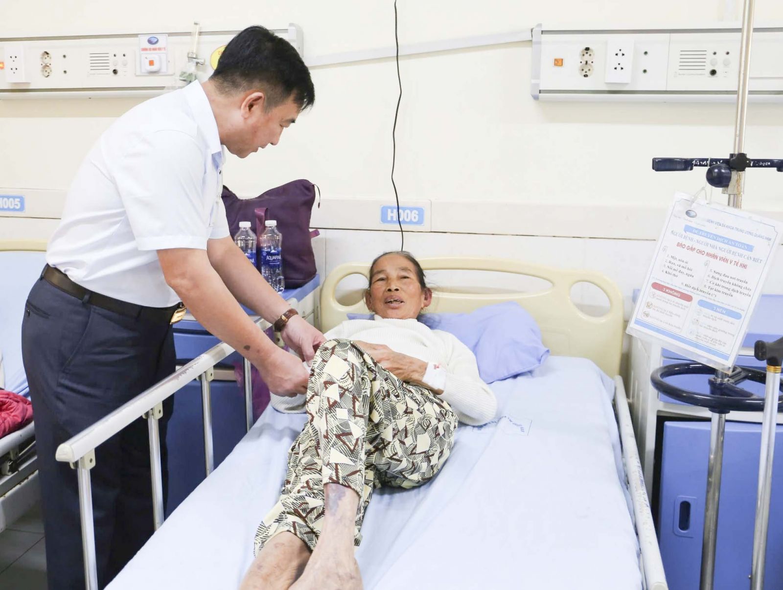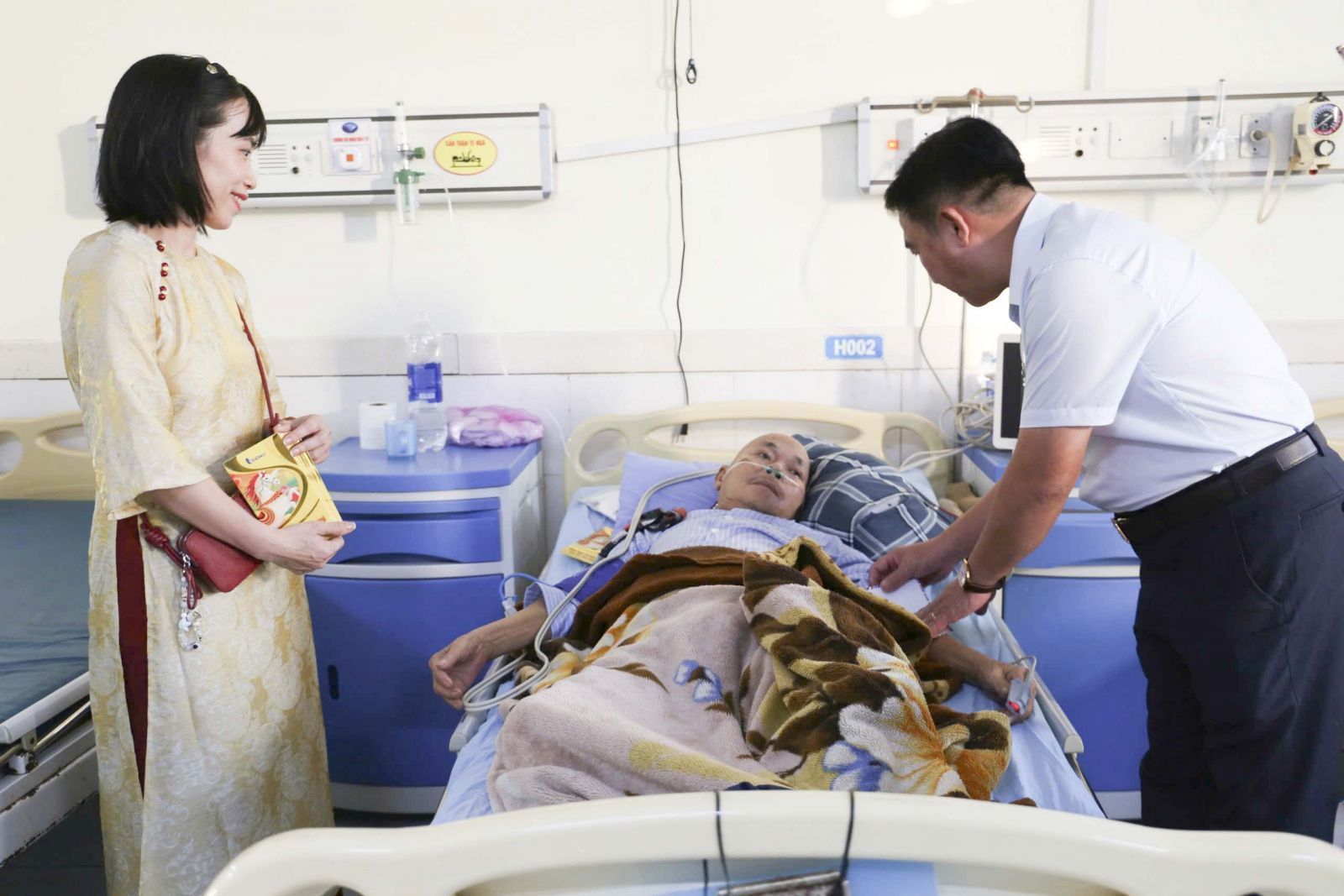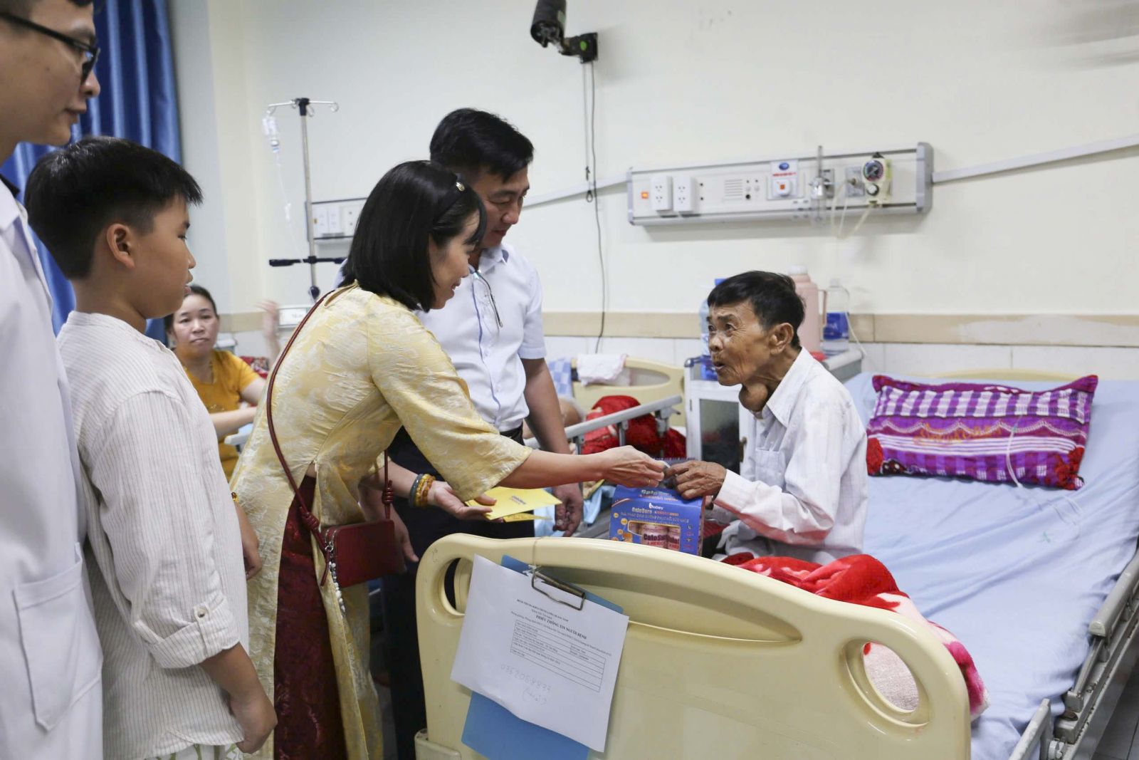 Tại các khoa phòng điều trị, BSCKII. Nguyễn Đình Hùng – Giám đốc Bệnh viện đã trực tiếp đến thăm hỏi, động viên và trao tận tay từng phần quà cho người bệnh không thể về sum họp cùng gia đình trong đêm Giao thừa.