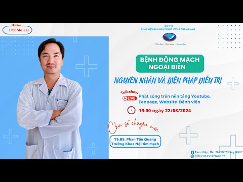 Để tìm hiểu về nguyên nhân và biện pháp điều trị bệnh động mạch ngoại biên, trong số phát sóng truyền hình trực tuyến của Bệnh viện Đa khoa Trung ương Quảng Nam lần này, chúng ta sẽ cùng đến với chia sẻ chuyên môn của Tiến sĩ, bác sĩ Phan Tấn Quang, trưởng khoa Nội tim mạch với chủ đề: “Bệnh động mạch ngoại biên: Nguyên nhân và biện pháp điều trị”.